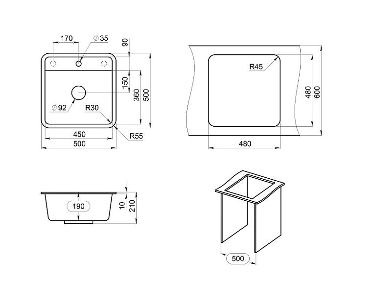 - Отверстия под смеситель:1