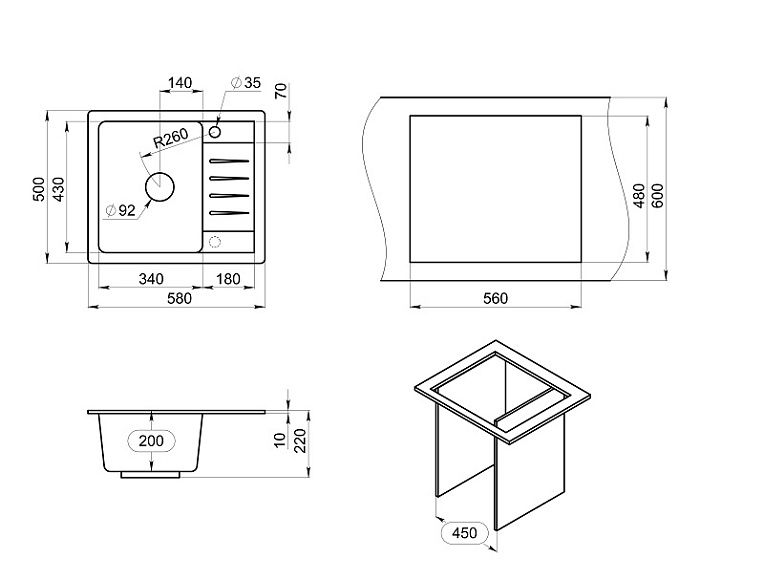 Мойка кухонная Granula Standart 5803, ЧЁРНЫЙ