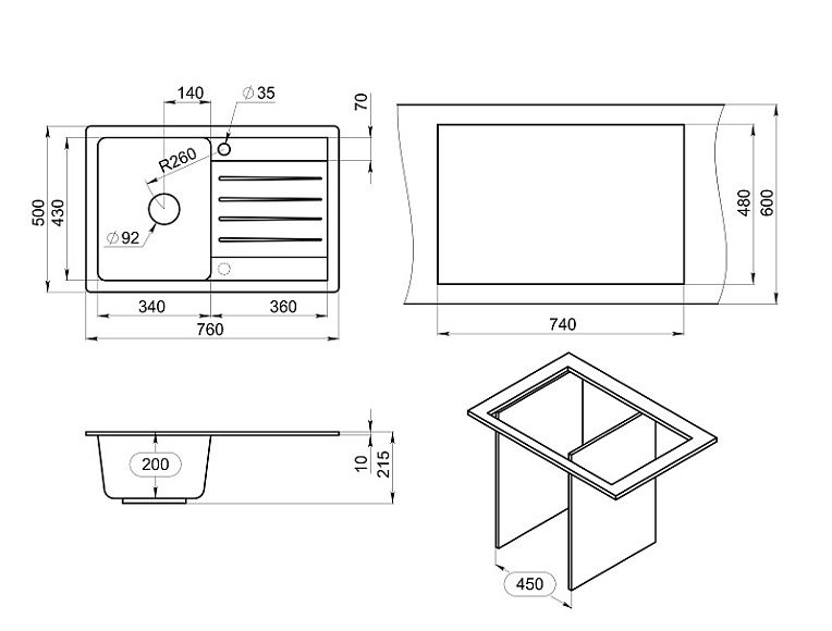 Мойка кухонная Granula Standart 7602, ГРАФИТ