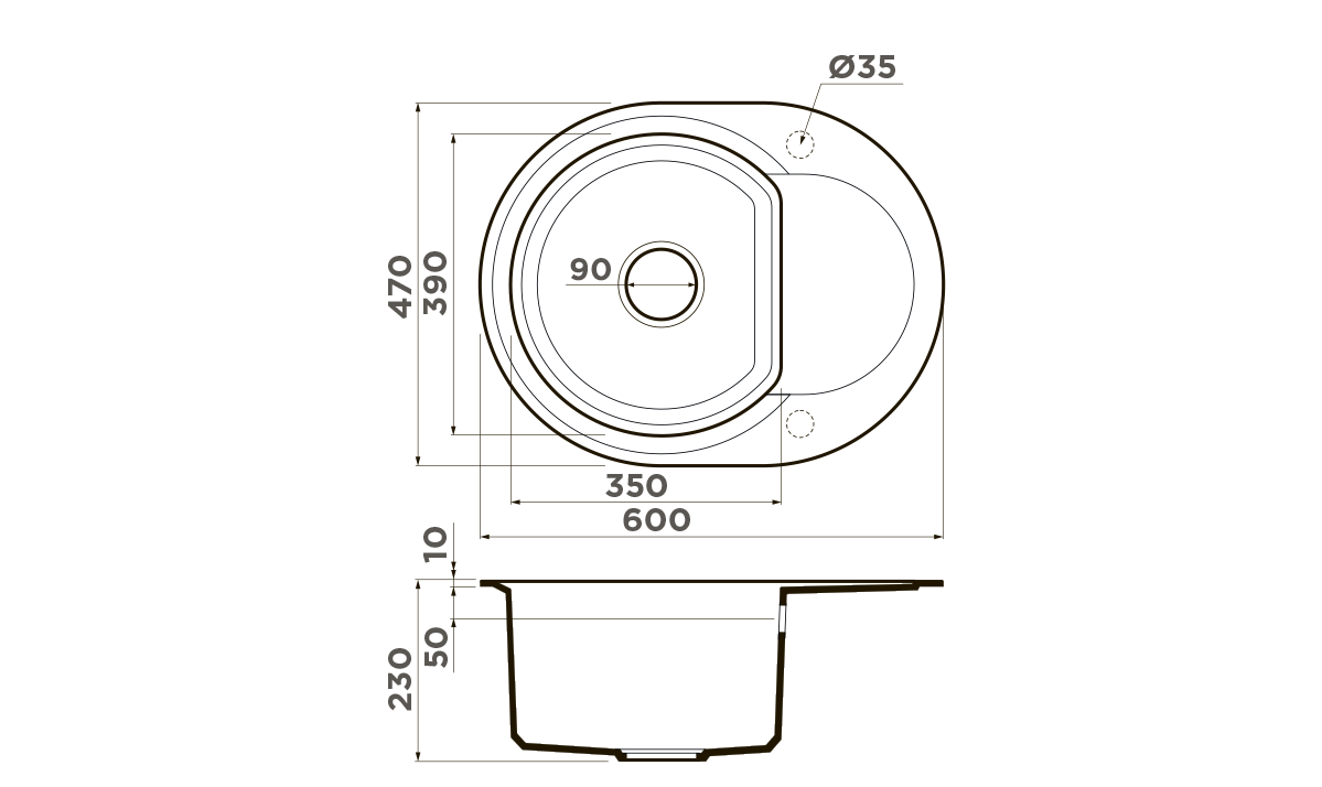 • Отверстия под смеситель: