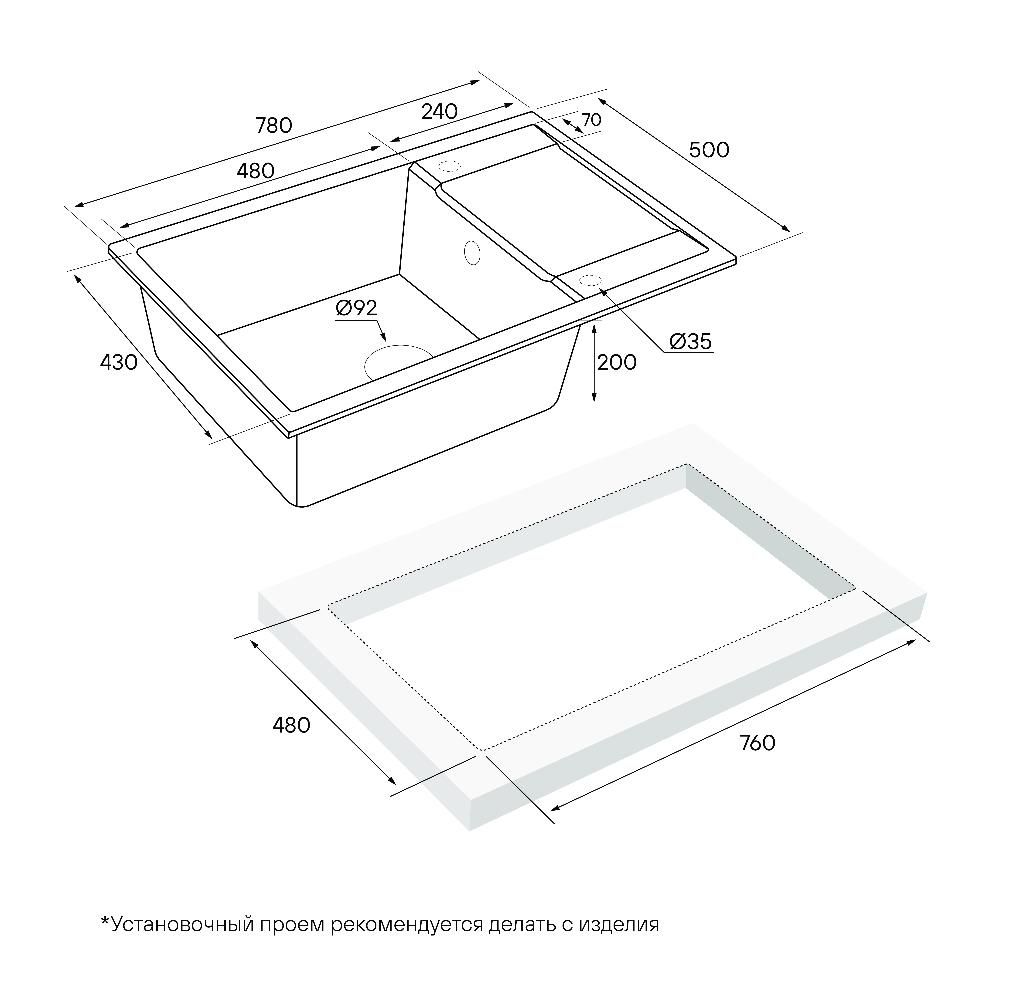 Материал мойки не нужно герметизировать, и, поскольку он не пористый, то он максимально устойчив к окрашиванию.Функциональное плоское крыло мойки