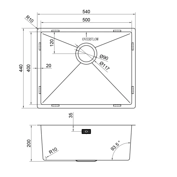 Мойка кухонная Reflexion Como 54-SS RX2054SS полированная сталь
