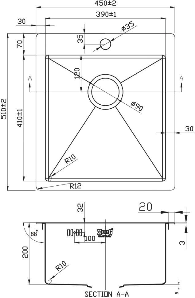 Мойка кухонная Zorg : чаша мойки выполнена из высококачественной легированной нержавеющей стали с последующей специальной PVD-обработкой в цвете черный/бронза. Данная модель прочная, устойчивая к царапинам, способна выдерживать высокие температуры. Функционально дополнит интерьер кухни. Конструкция призвана заметно облегчить привычные дела – от мытья посуды до разморозки продуктов. Сверху нанесено покрытие, которое придает глубокий цвет и обеспечивает защиту от преждевременного истирания. Толщина нержавеющей стали 1,5–3 мм и шумоподавляющие накладки делают модель практически бесшумной.
