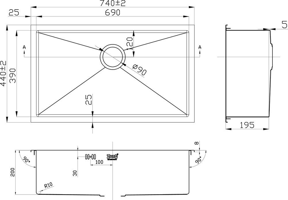 Мойка кухонная Zorg Inox RX RX-7444