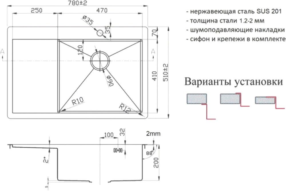Мойки кухонные серии Zorg производятся из высококачественной легированной нержавеющей стали марки SUS 304 (толщина стали 1 мм). Характерными особенностями кухонных моек данной серии являются прямые углы моечной чаши и четкие линии поверхности мойки, которые несомненно придутся по вкусу обладателям кухни в стиле хай-тек. Матовая поверхность мойки достигается благодаря применению брашинга (шлифование специальными щётками). Встроенная система крепления для аксессуаров позволит использовать всевозможные аксессуары Zorg (разделочные доски, поддоны и коландеры), превращая поверхность мойки в рабочую зону и обеспечивая дополнительное пространство на кухне.