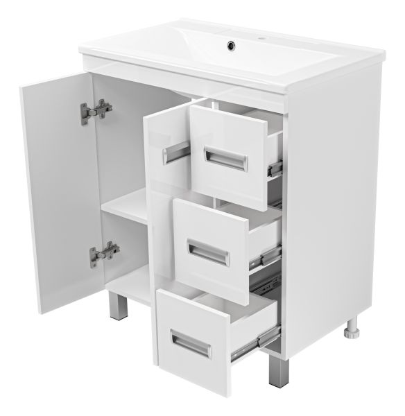 Напольная тумба под раковину – это не просто элемент мебели, но настоящее произведение искусства, которое сочетает в себе функциональность и изысканный дизайн. Изготовленная из высококачественных материалов, она гарантирует долговечность и устойчивость к воздействию влаги.Удобная система хранения позволяет размещать все необходимое для гигиенических процедур, а её продуманные размеры отлично вписываются даже в небольшие помещения. Стильные ручки и элегантные фасады придают тумбе особый шарм, а разнообразие цветовых решений позволит выбрать модель, соответствующую любому интерьеру – от классического до модерн.Мягкие линии и непринужденные формы делают тумбу неотъемлемой частью ванной, превращая её в любимое место для отдыха. Совершенное сочетание эстетики и практичности позволяет создать гармоничный и стильный интерьер, что делает напольную тумбу для ванной комнаты идеальным аксессуаром для любого дома