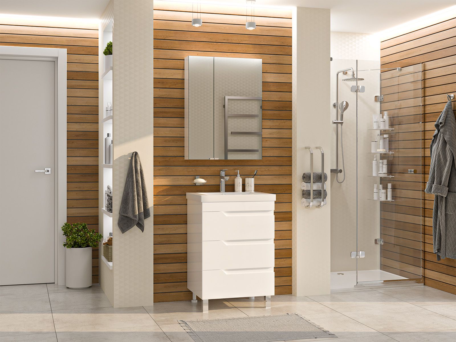 Напольная тумба под раковину – это не просто элемент мебели, но настоящее произведение искусства, которое сочетает в себе функциональность и изысканный дизайн. Изготовленная из высококачественных материалов, она гарантирует долговечность и устойчивость к воздействию влаги.Удобная система хранения позволяет размещать все необходимое для гигиенических процедур, а её продуманные размеры отлично вписываются даже в небольшие помещения. Стильные ручки и элегантные фасады придают тумбе особый шарм, а разнообразие цветовых решений позволит выбрать модель, соответствующую любому интерьеру – от классического до модерн.Мягкие линии и непринужденные формы делают тумбу неотъемлемой частью ванной, превращая её в любимое место для отдыха. Совершенное сочетание эстетики и практичности позволяет создать гармоничный и стильный интерьер, что делает напольную тумбу для ванной комнаты идеальным аксессуаром для любого дома