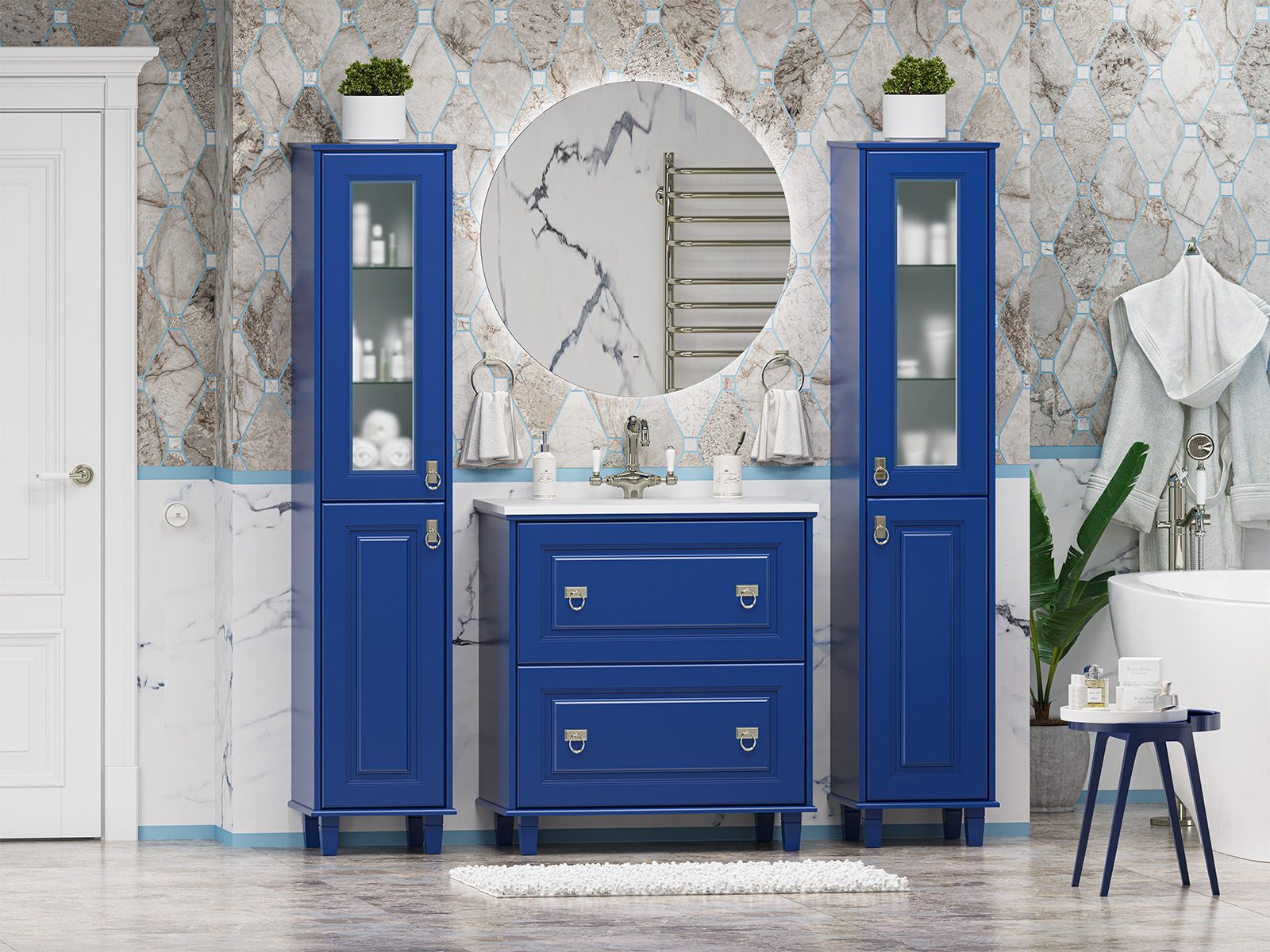 Напольный шкаф - пенал Misty Версаль 35см правый синий