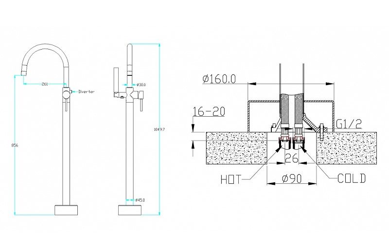 Напольный смеситель для ванны Boheme Uno 469-B чёрный
