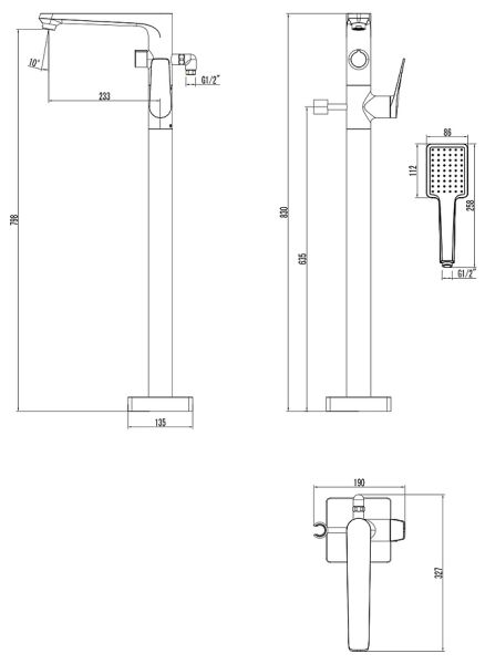 - Высота излива: 798 мм