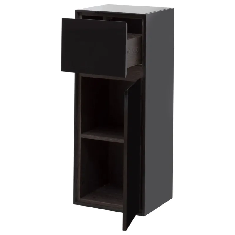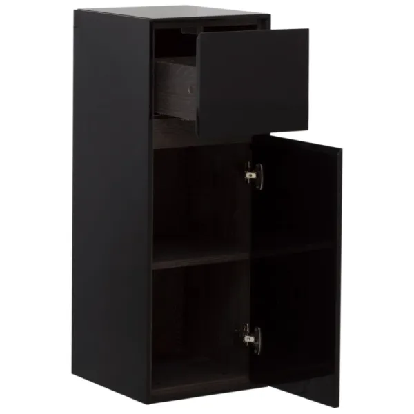 Шкаф-пенал Aquanet Милан 35 черный глянец (малый) – это элегантное и функциональное решение для вашего интерьера. Благодаря своему современному дизайну и качественной отделке, он идеально впишется в любое помещение, добавляя ему нотки стиля. Поверхность шкафа выполнена из эмали, что придаёт шкафу особую привлекательность, добавляя нотку изысканности. Ориентация правосторонняя удобно дополняет возможности размещения в вашем доме. Система хранения включает удобную дверцу и вместительный ящик, что обеспечивает максимальную организацию пространства. Использование направляющих с доводчиком и петель с доводчиком гарантирует плавное открывание и закрывание, что особенно важно в повседневной эксплуатации. Еще одной отличительной чертой являются скрытые ручки, позволяющие открывать шкаф за фасад, а также фрезеровка под углом 45 градусов, придающая ему современный и минималистичный вид. Шкаф-пенал Aquanet Милан 35 – это не только практичность, но и эстетика в одном решении.