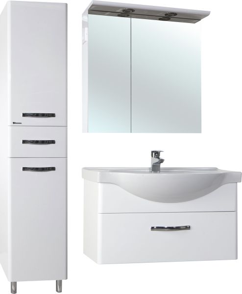Для ванных комнат, где важно сочетание стиля и практичности. Глянцевый белый цвет визуально расширяет пространство, а продуманная конструкция обеспечивает удобное хранение.