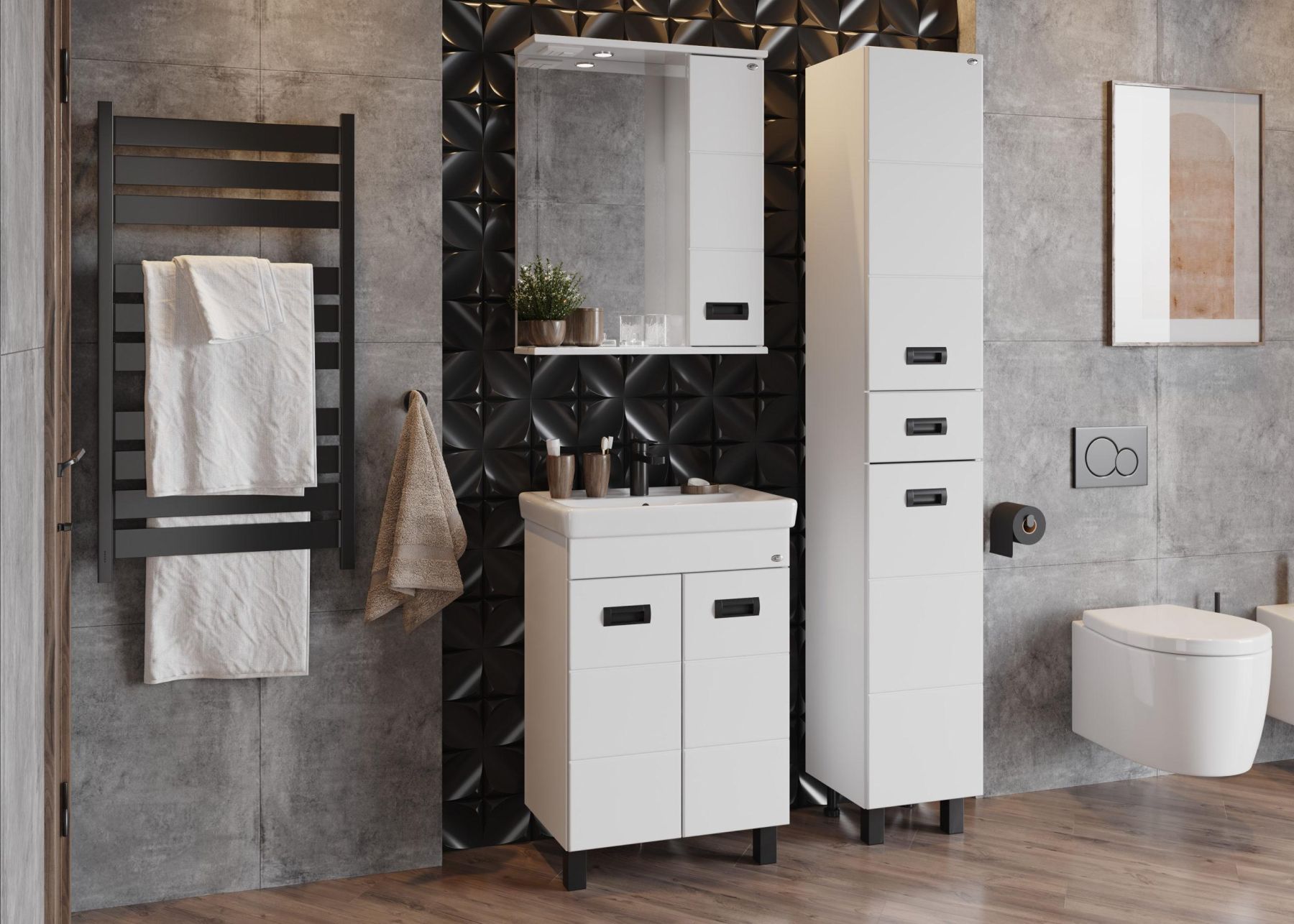 Напольный шкаф пенал для ванной комнаты Onika БАЛТИКА 32 Black - это простые функциональные формы и яркий акцент в любом дизайне.