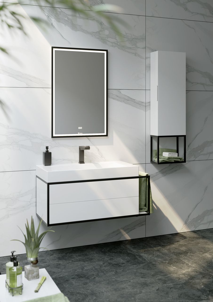 Подвесной шкаф пенал Clarberg Logic 35 LOG0435 с одной распашной дверцей и открытой полкой. Главная особенность коллекции - это применение алюминиевого анодированного профиля в чёрном цвете.Технические данные:Цвет: белый матовый.