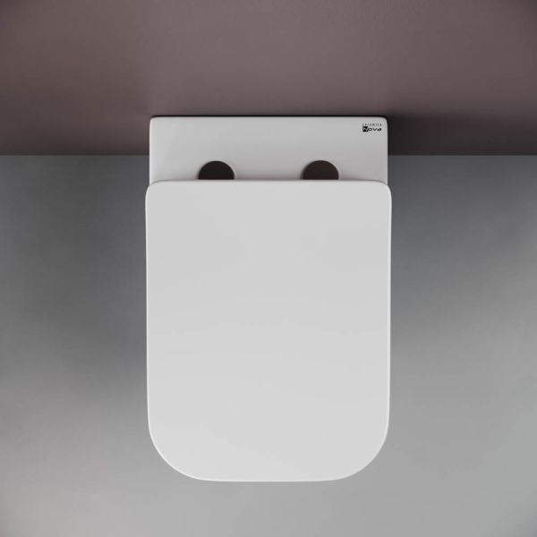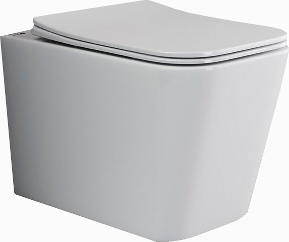 Подвесной унитаз Cubic Rimless, глубокий смыв, с крепежом для полностью скрытого монтажа, ультра тонким сидением с функцией плавного закрытия