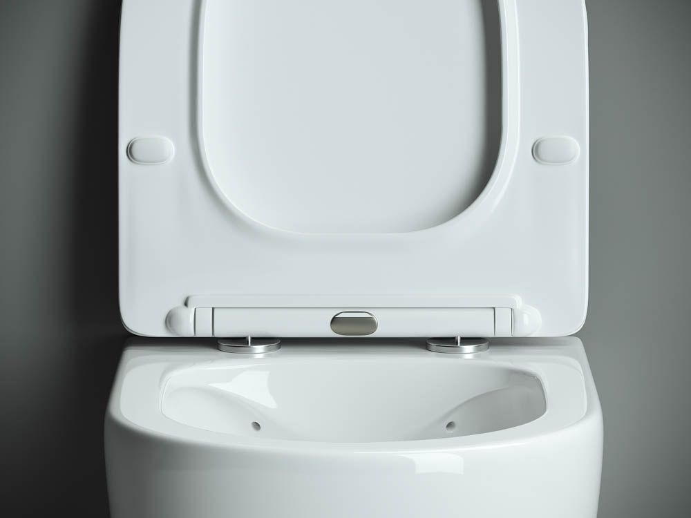 Подвесной унитаз Mono Rimless, глубокий смыв, с крепежом для полностью скрытого монтажа, ультра тонким сидением с функцией плавного закрытия, дюропласт