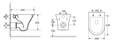 Подвесной безободковый унитаз Ceruttispa Bernina aria CT7191Размер: 485X360X365 ммЦвет: белый