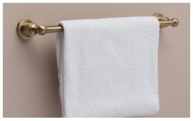 Держатель для полотенец Aquanet 3824 выполнен в ретро-стиле. Колорит изделию придает золотисто-медный оттенок латуни и живописные элементы декора. К таковым относятся, в частности, оригинальной формы детали, которые являются креплением аксессуара к стене. Между ними стержень для полотенца. Модель имеет длину 60 см и предназначена для размещения одного полотенца. Лаконично и эффектно. Выполнен держатель из латуни - сплава меди с цинком. Этот материал зарекомендовал себя как надежный и стойкий к коррозии, что для влажной среды особенно актуально.