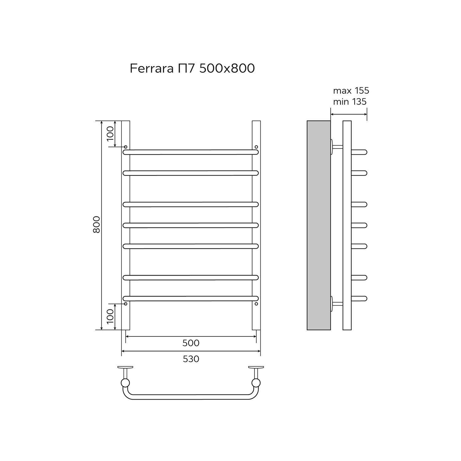 Полотенцесушитель водяной AZARIO FERRARA AZ09158 500/800 7 секций, нижнее/диагональное подключение, 1/2, хром