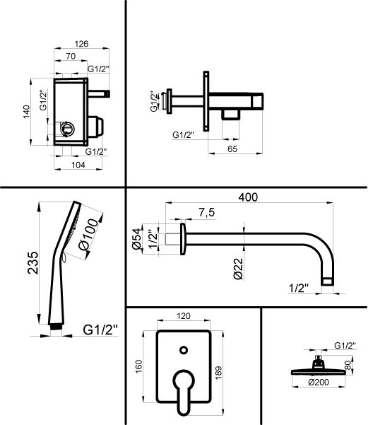 Промо-комплект AZARIO TEVIS AZ-15490721 встраиваемый для душа