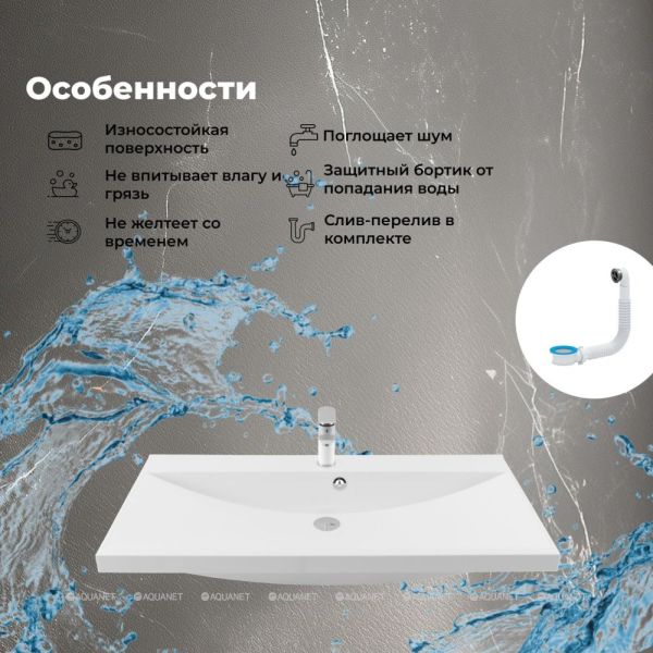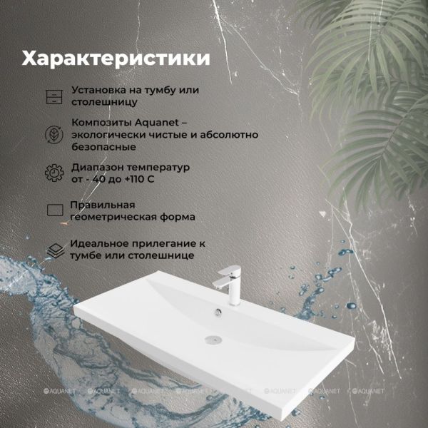 Раковина для мебели Aquanet Нота 90 от производителя AQUANET.Мраморный материал эстетически привлекателен и добавляет интерьеру респектабельности.Прямоугольная форма предлагает оптимальное использование доступного места на поверхности.Одно отверстие упрощает установку смесителя и обеспечивает минималистичный вид.