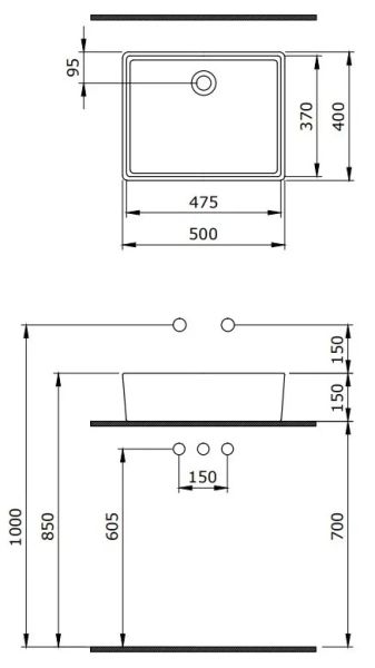 • Отверстия под смеситель: