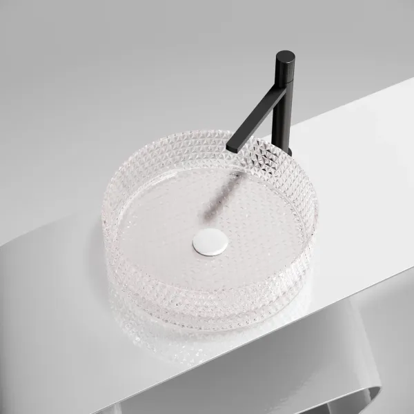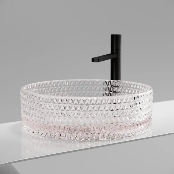 Умывальник чаша накладная круглая (цвет розовый) Cristal 360*360*112мм