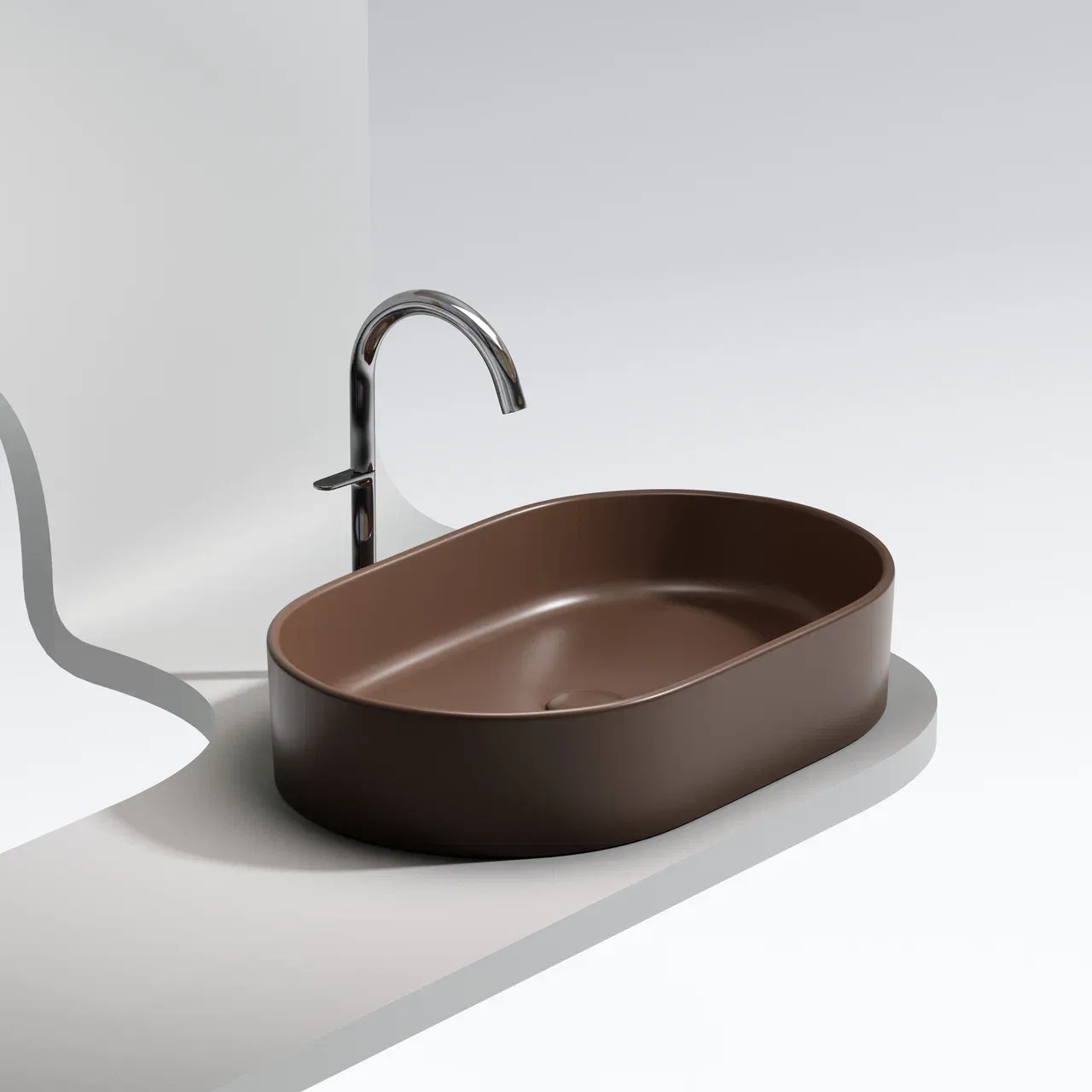 Умывальник чаша накладная овальная (цвет Темно-Коричневый Матовый) Element 608*385*122мм