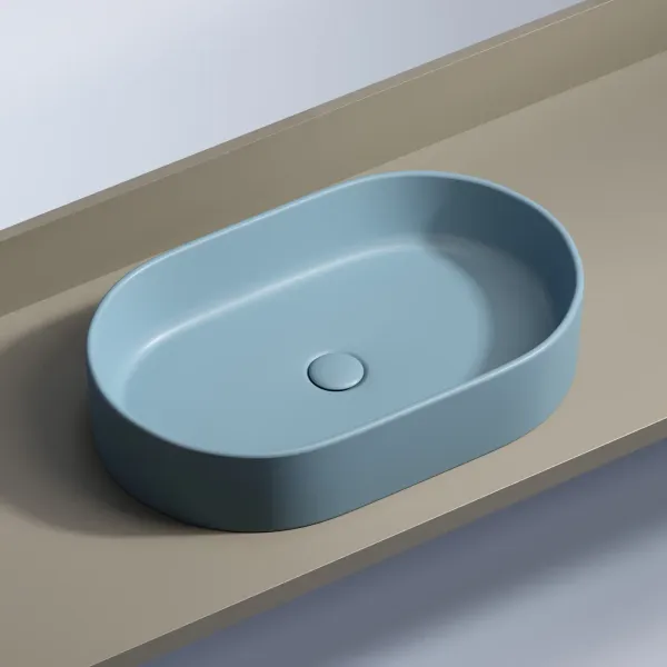 Умывальник чаша накладная овальная (цвет Голубой Матовый) Element 608*385*122мм