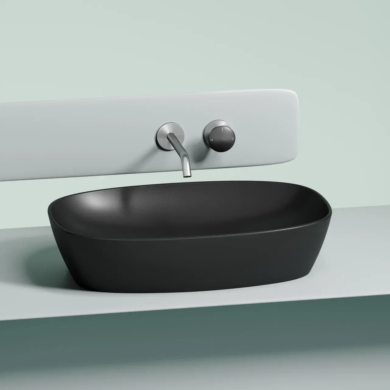 Умывальник чаша накладная овальная (цвет Чёрный Матовый) Element 600*380*138мм