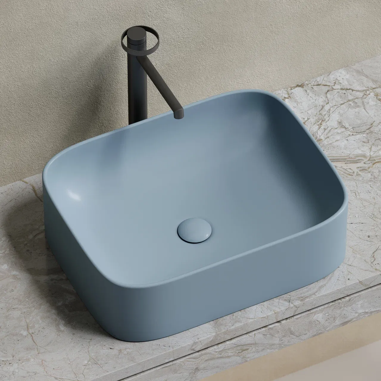 Умывальник чаша накладная прямоугольная (цвет Серо-Голубой Матовый) Element 505*380*150мм