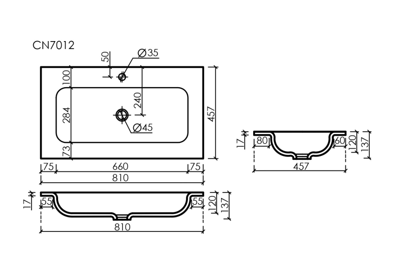 • Рекомендуемый донный клапан к раковине CN2000MC или CN2000CH приобретается отдельно.