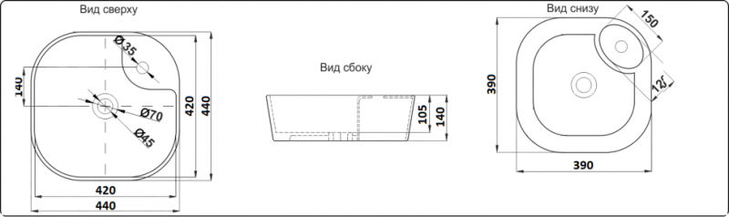 • Отверстия под смеситель: