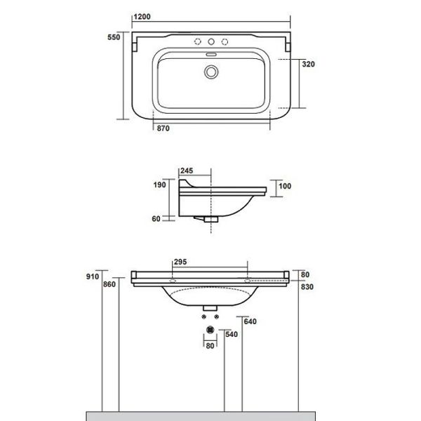 Раковина Kerasan Waldorf 4144K1bi/cr*3 Белая 120 смХарактеристики:Цвет: белый.