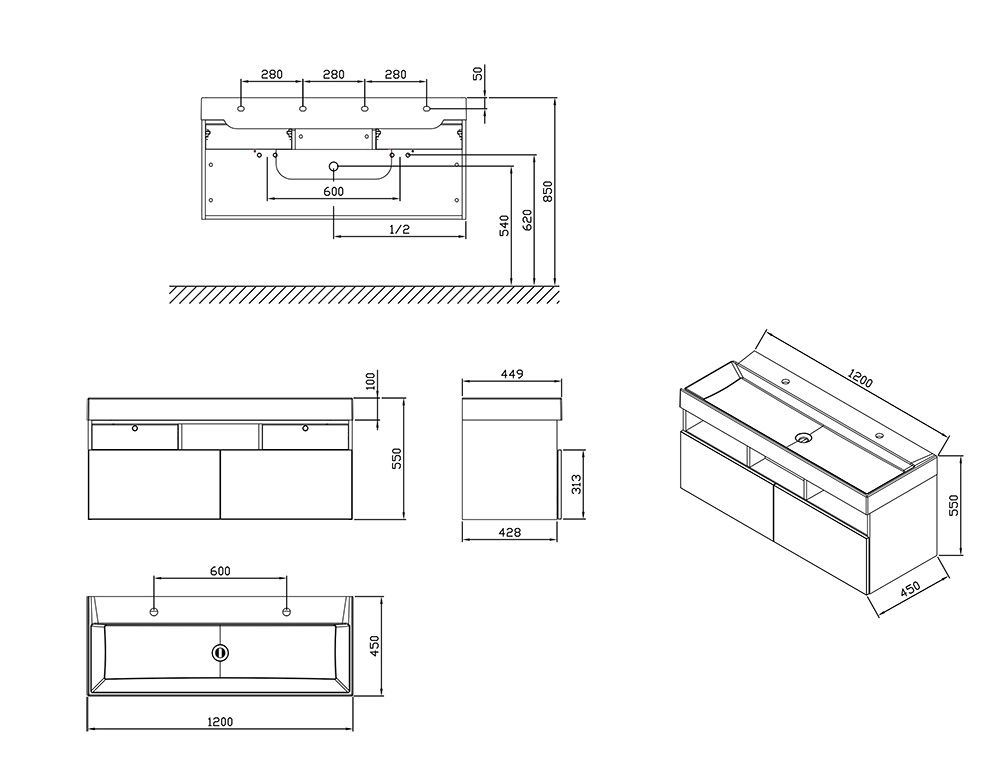 1200 x 450 x 450