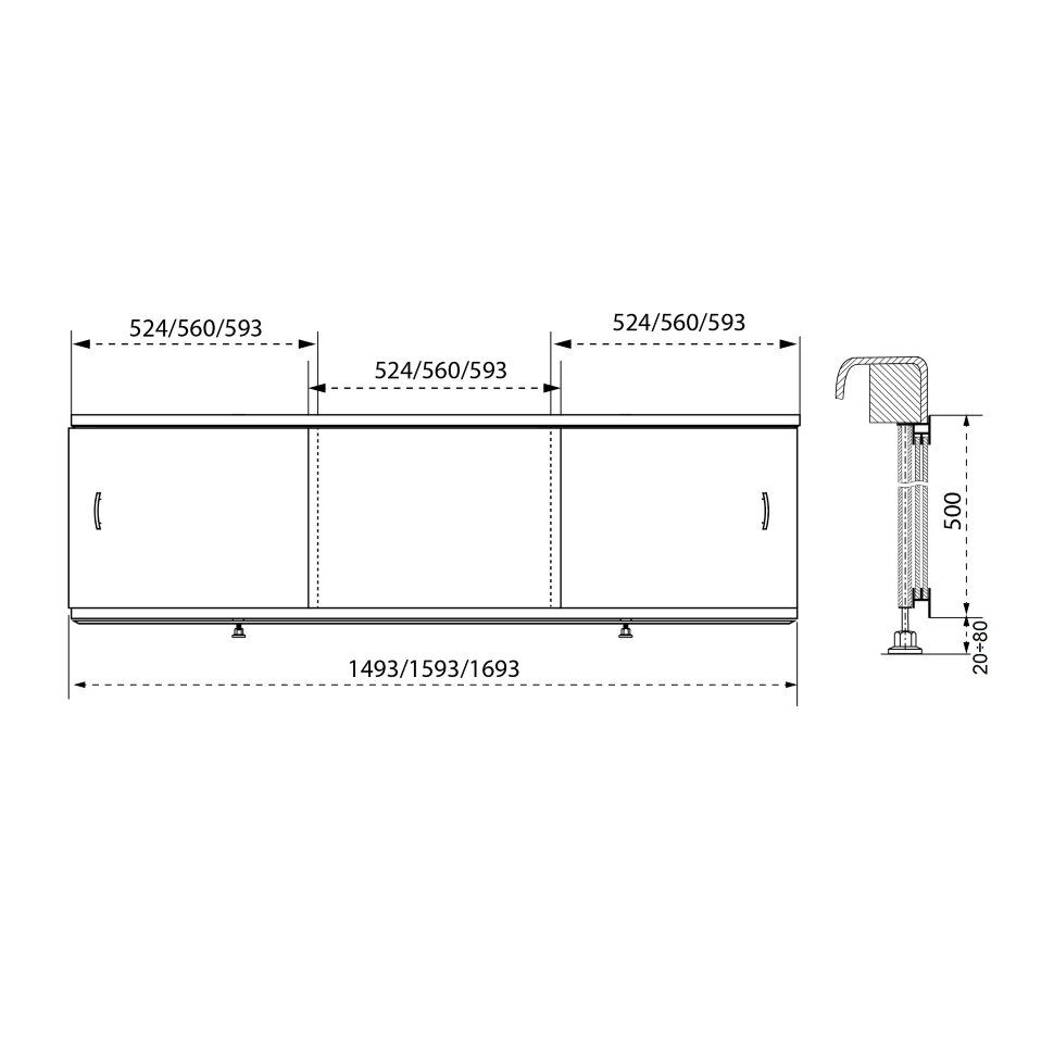 Раздвижной экран для ванны Triton Щ0000049087 170 см