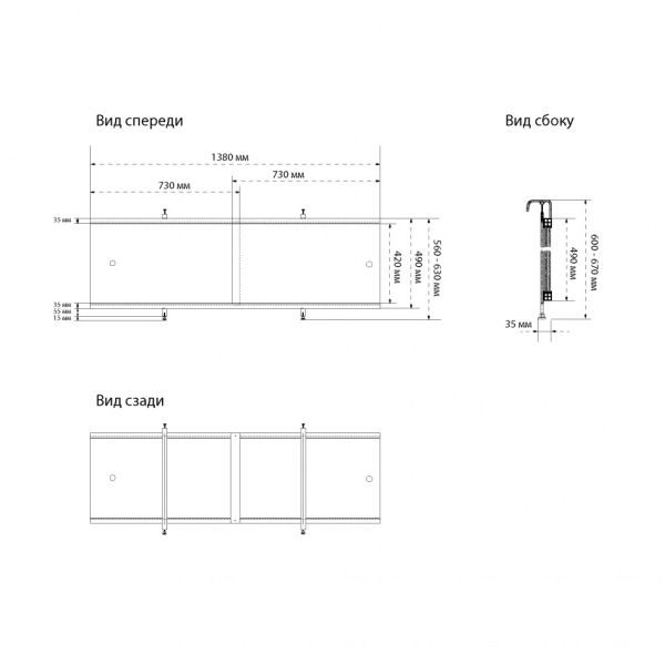 Раздвижной экран для ванны Triton Щ0000067938 138 см