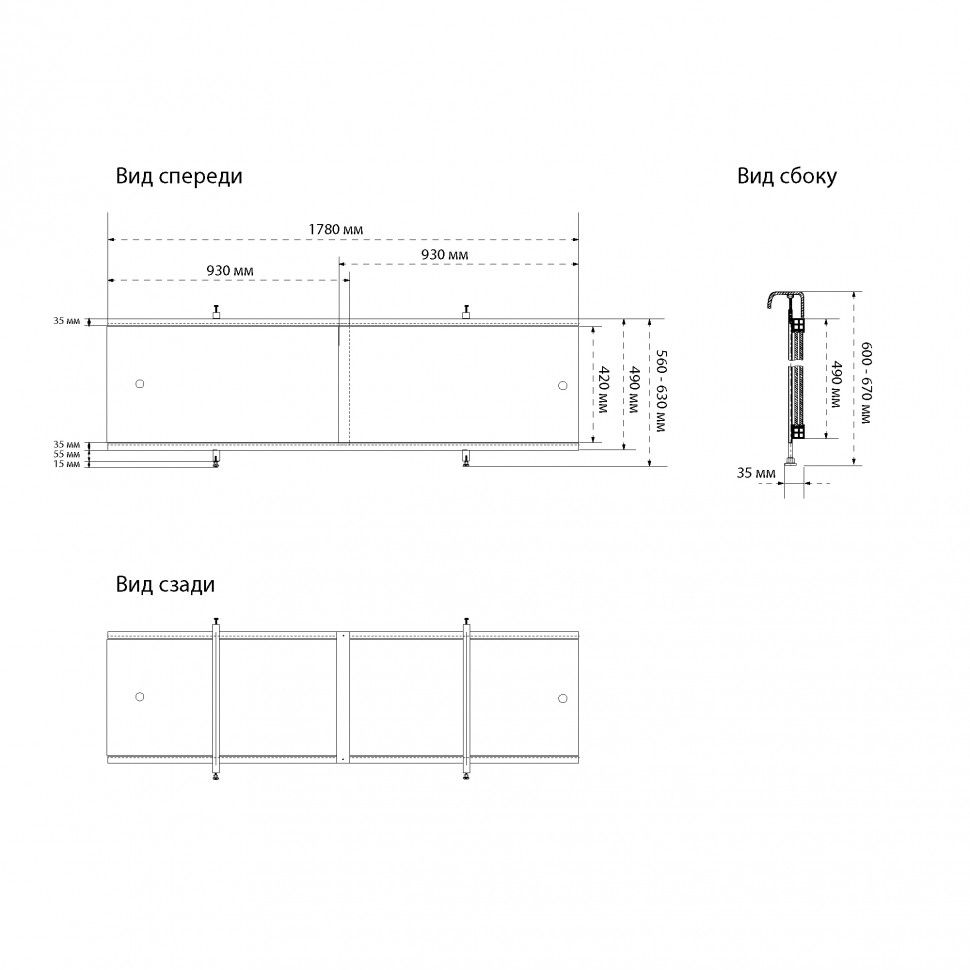 Раздвижной экран для ванны Triton Щ0000067939 178 см