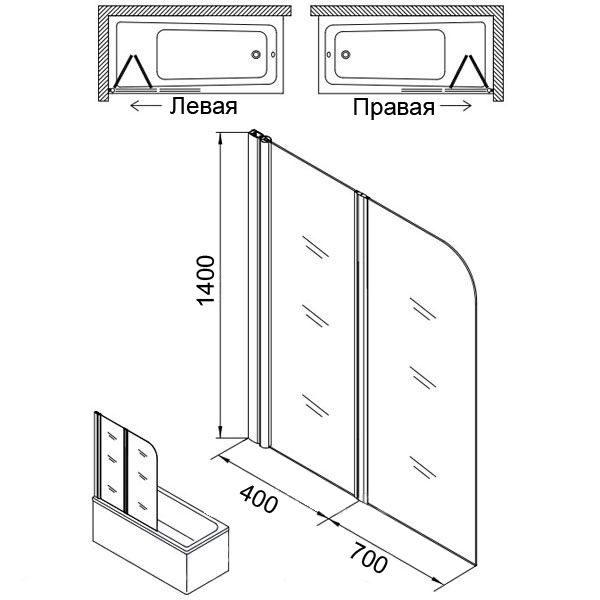Шторка для ванны Azario MERRIT AZ-NF6221 1100