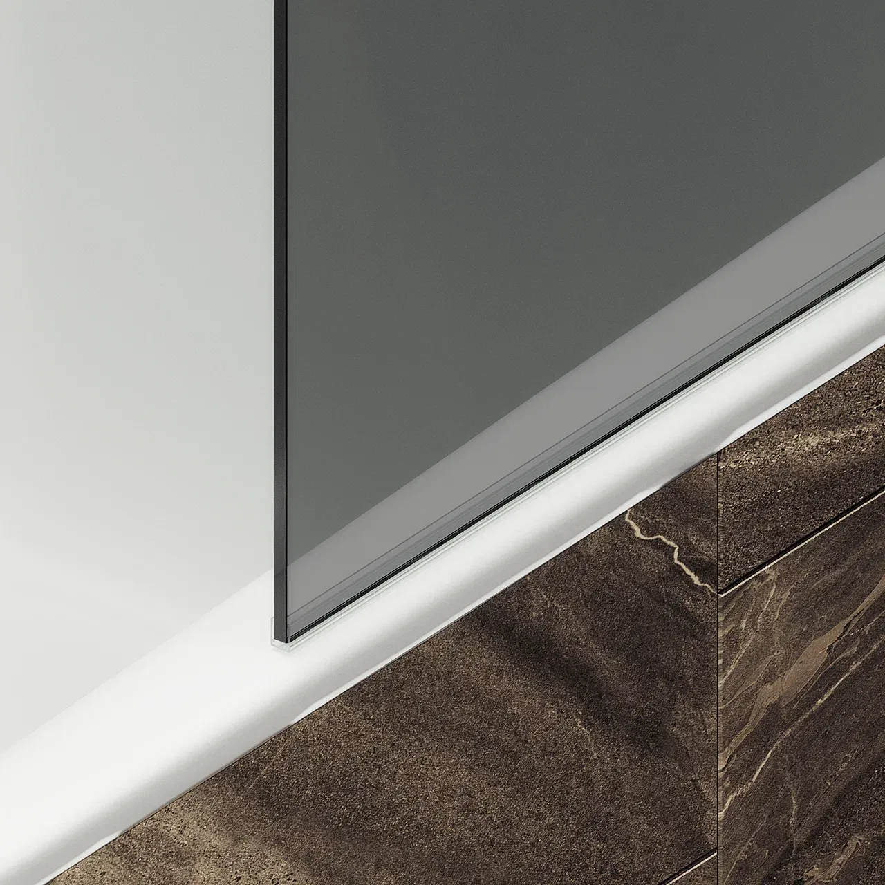 Монтаж осуществляется с помощью алюминиевого профиля, что обеспечивает надежность крепления и безопасность использования стеклянной перегородки для ванной. Также, шторка оснащена специальным уплотнителем, который предотвращает попадание воды на пол ванной комнаты. Закаленное стекло, цвет Графит, толщина 8 мм 1400х300 мм - 1 шт.