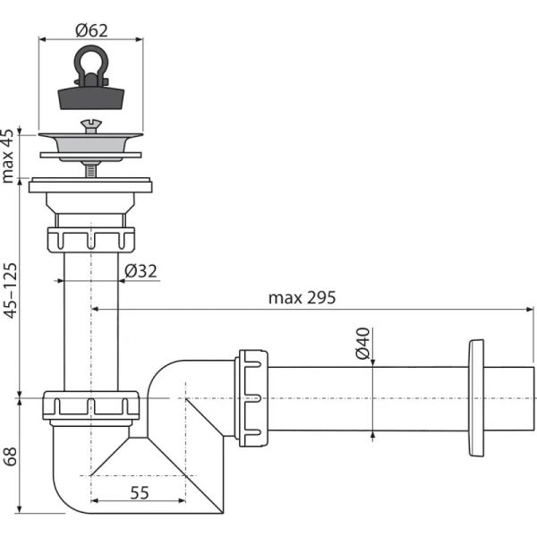 Сифон для раковины AlcaPlast ?40 с нержавеющей решеткой ?63 A412-DN40