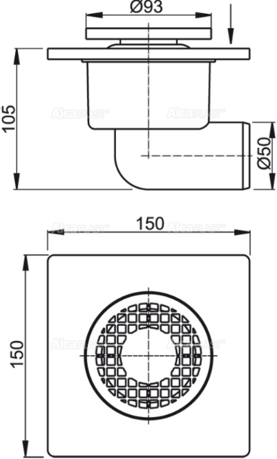 Сливной трап AlcaPlast 150 ? 150/50мм решетка - серая APV3 купить