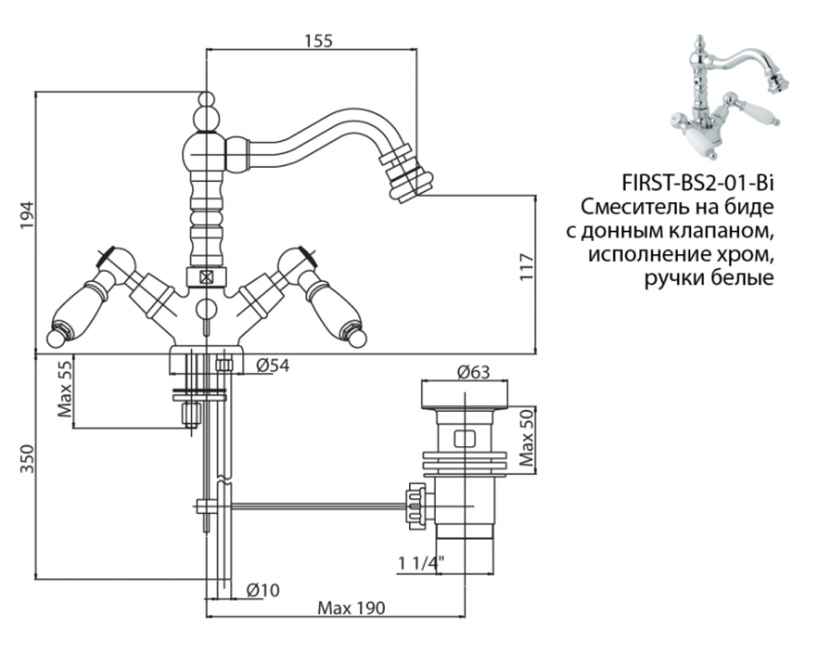 • Высота смесителя: