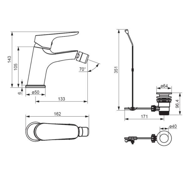 Смеситель для биде Damixa Jupiter 770240300 с донным клапаном черный