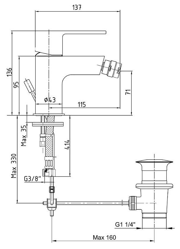 - Высота смесителя:13.6