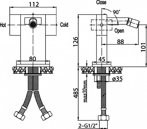 Тип подводки: гибкая 1/2"
