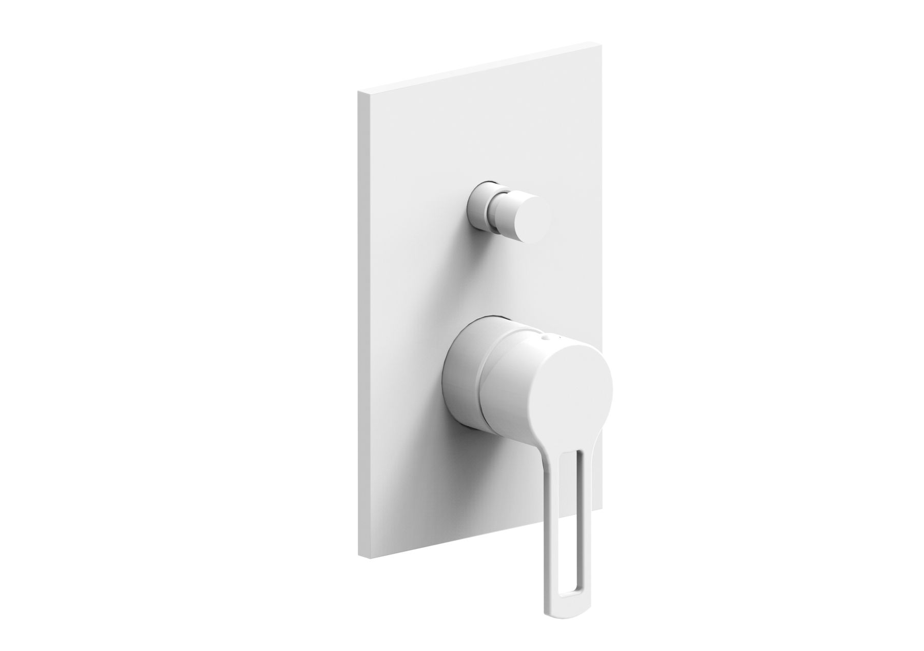 Смеситель встраиваемый для душа на 2 выхода с накладкой нерж сталь 120х190мм.девиатор-кнопка, Белый матовыйСмеситель для душа Paffoni Ringo RIN015BO/M (с внутренней частью) предназначен для душа. Своим ярким дизайном и колористикой он внесет в интерьер помещения особое настроение, подчеркнув его своеобразие. Он выполнен из надежного материала латунь/Нержавеющая сталь, который не ржавеет, а потому прослужит без ремонтов. Модель является оптимальным примером достойного качества. Управление в смесителе предусмотрено однорычажное, что удобно для любителей такого типа смесителей. Высокую жизнеспособность и основательность смесителю гарантирует керамический картридж, главным преимуществом которого является беспроигрышная конструкция - залог безупречной работы в течение длительного времени. Не напрасно гарантия на смеситель – 5 лет, в течение которого компания Paffoni заверяет в его бесперебойной работе. Форма излива в смесителе - нет, а тип - нет. При покупке учтите, что подводка у смесителя жесткая, что требуется знать для его монтажа.
