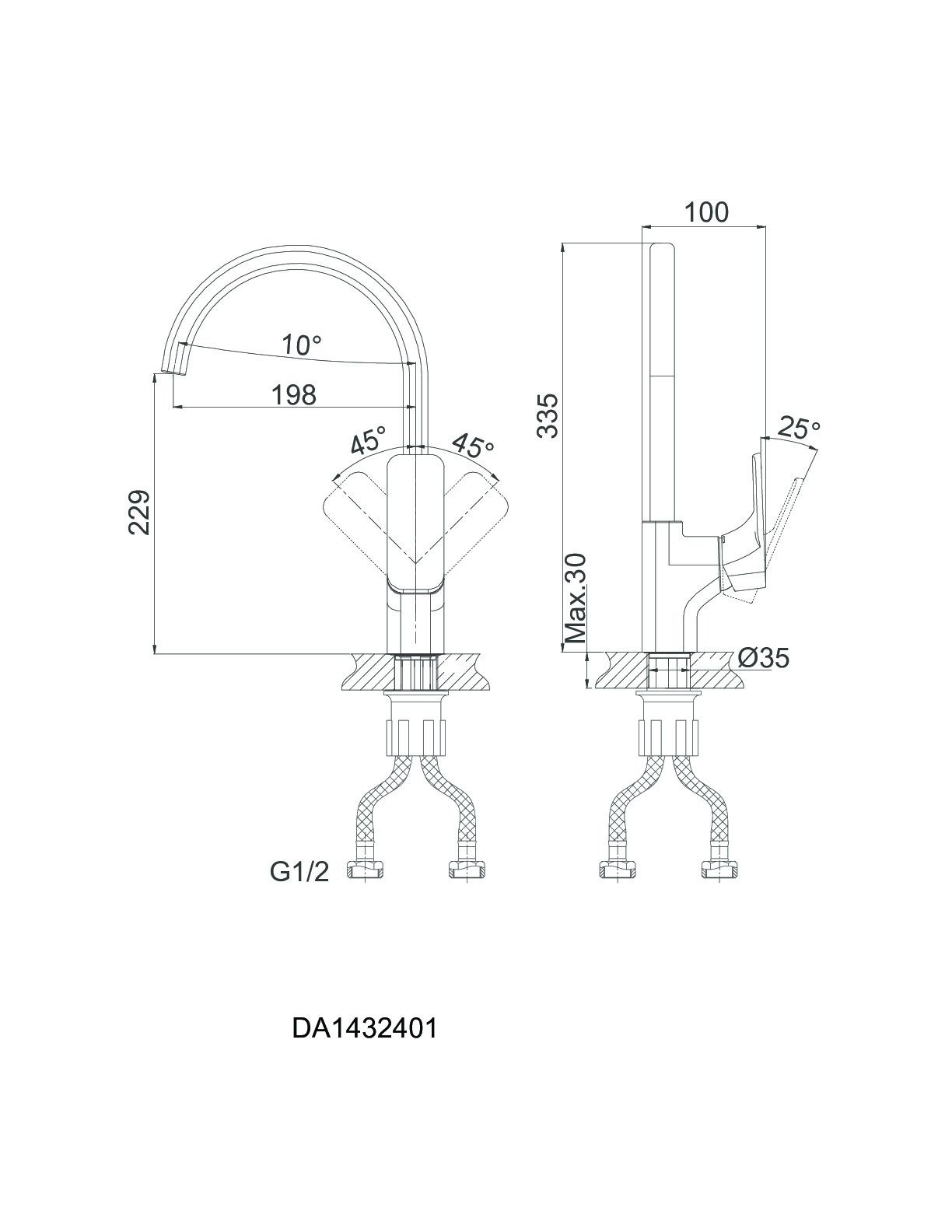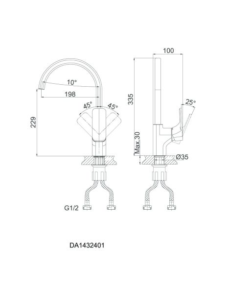- Высота смесителя:33.5