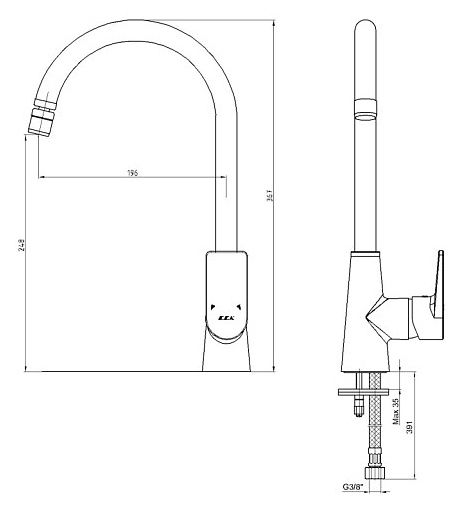 - Высота смесителя:36.7