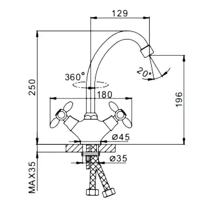 - Высота смесителя:25